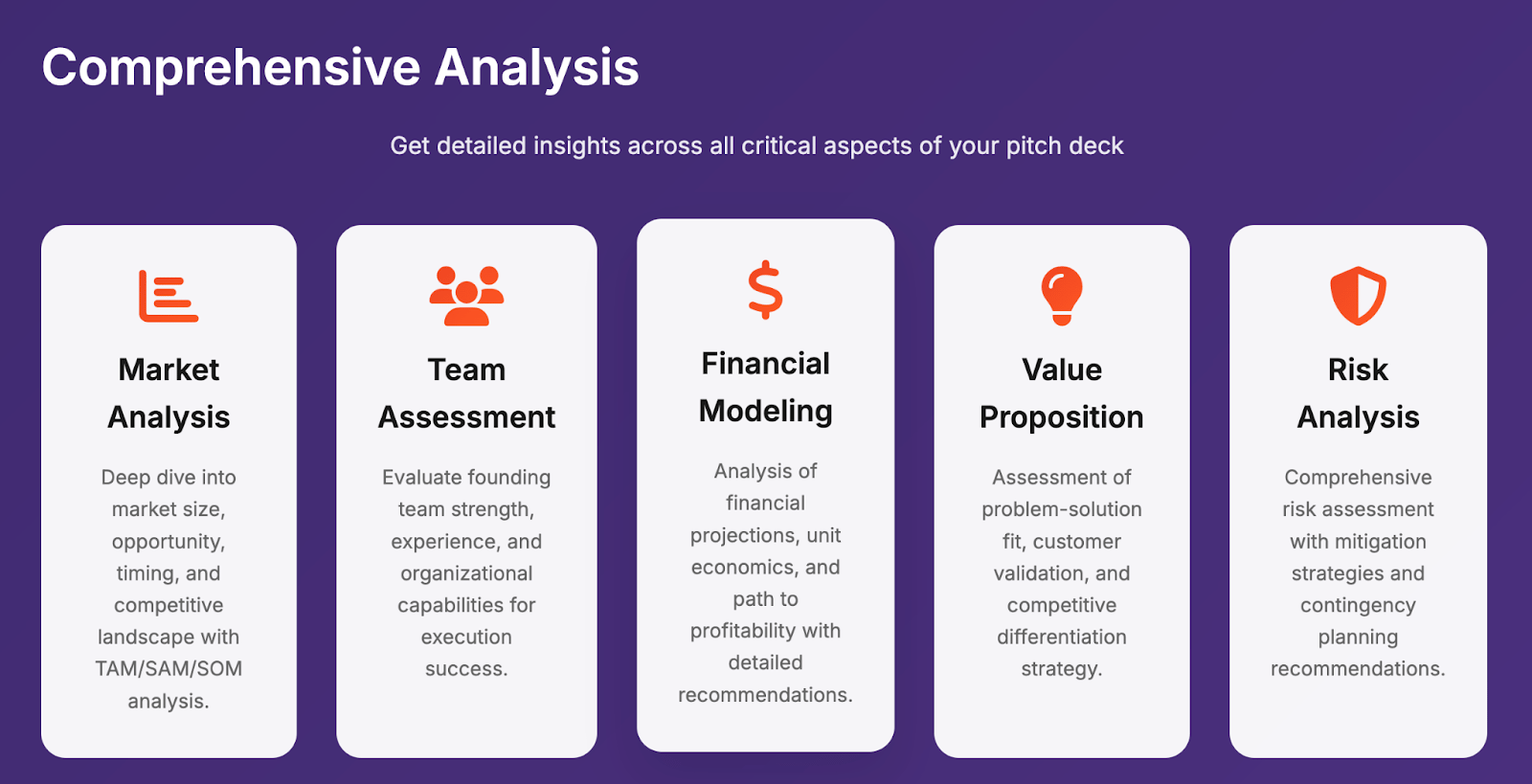 Pitch Deck Analyzer: Upload your deck and get AI feedback on structure & clarity